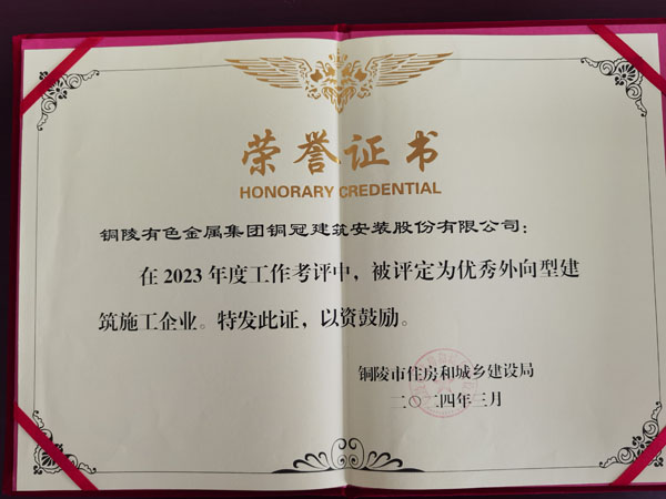 銅陵市優(yōu)秀外向型建筑施工企業(yè)(2023年...