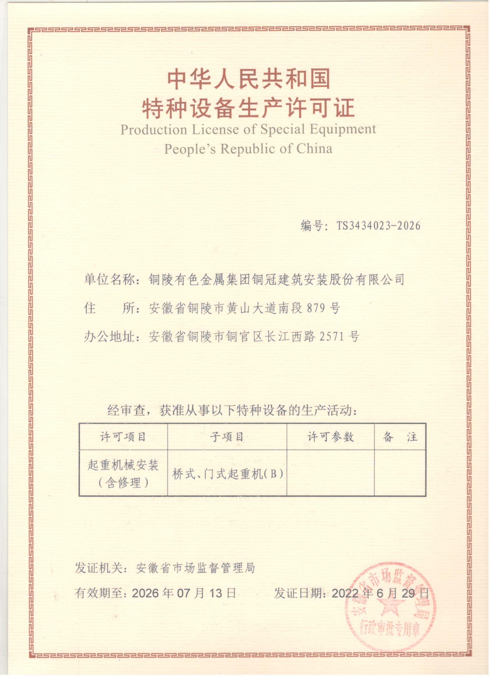特種設(shè)備安裝改造修理許可證-起重機(jī)械