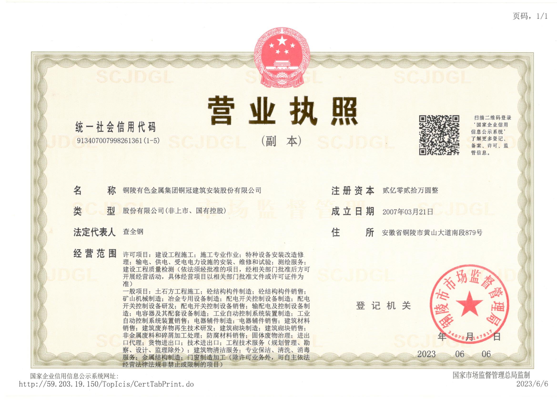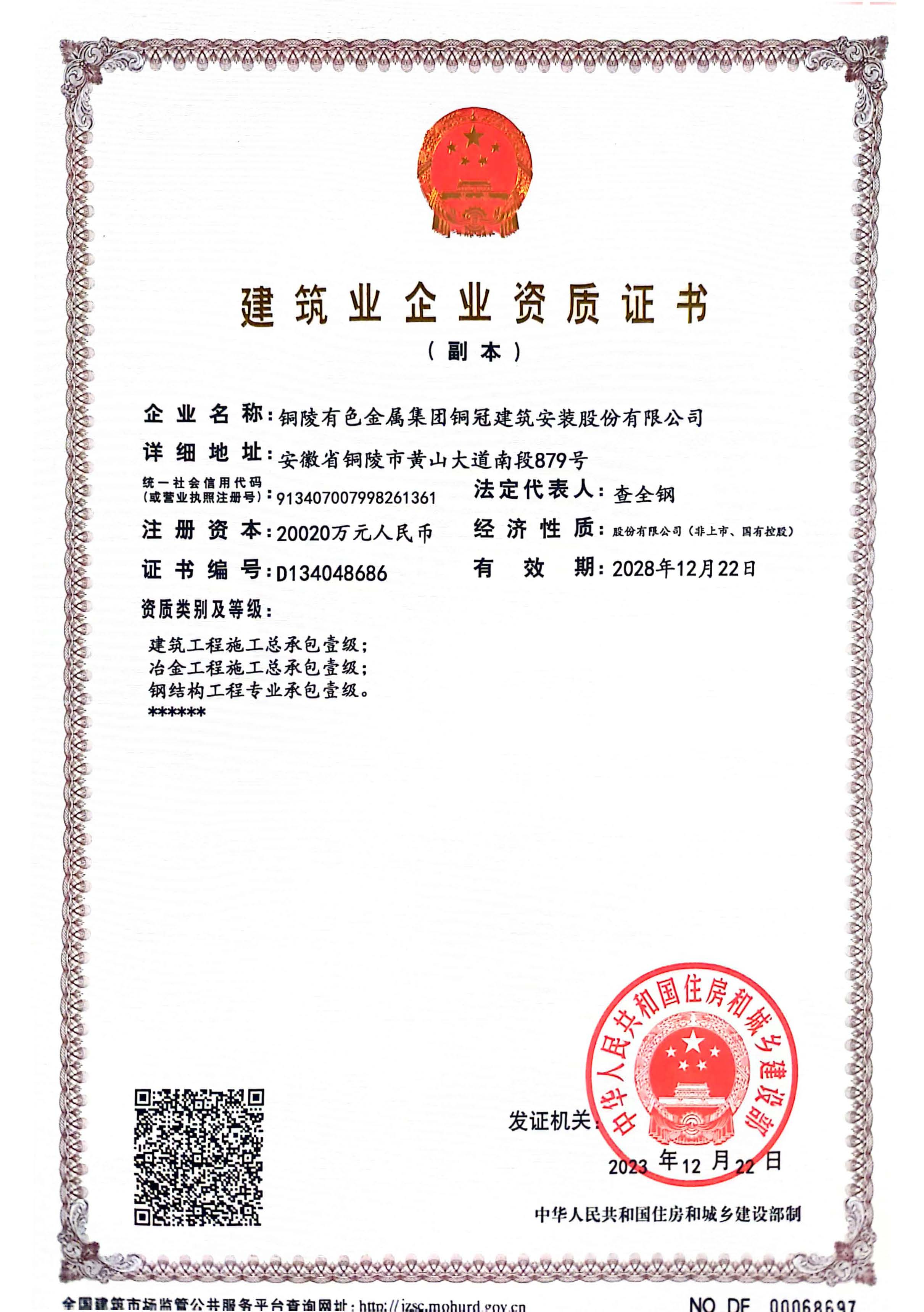 有色金屬工業(yè)建設(shè)工程質(zhì)量檢測機(jī)構(gòu)資質(zhì)證書