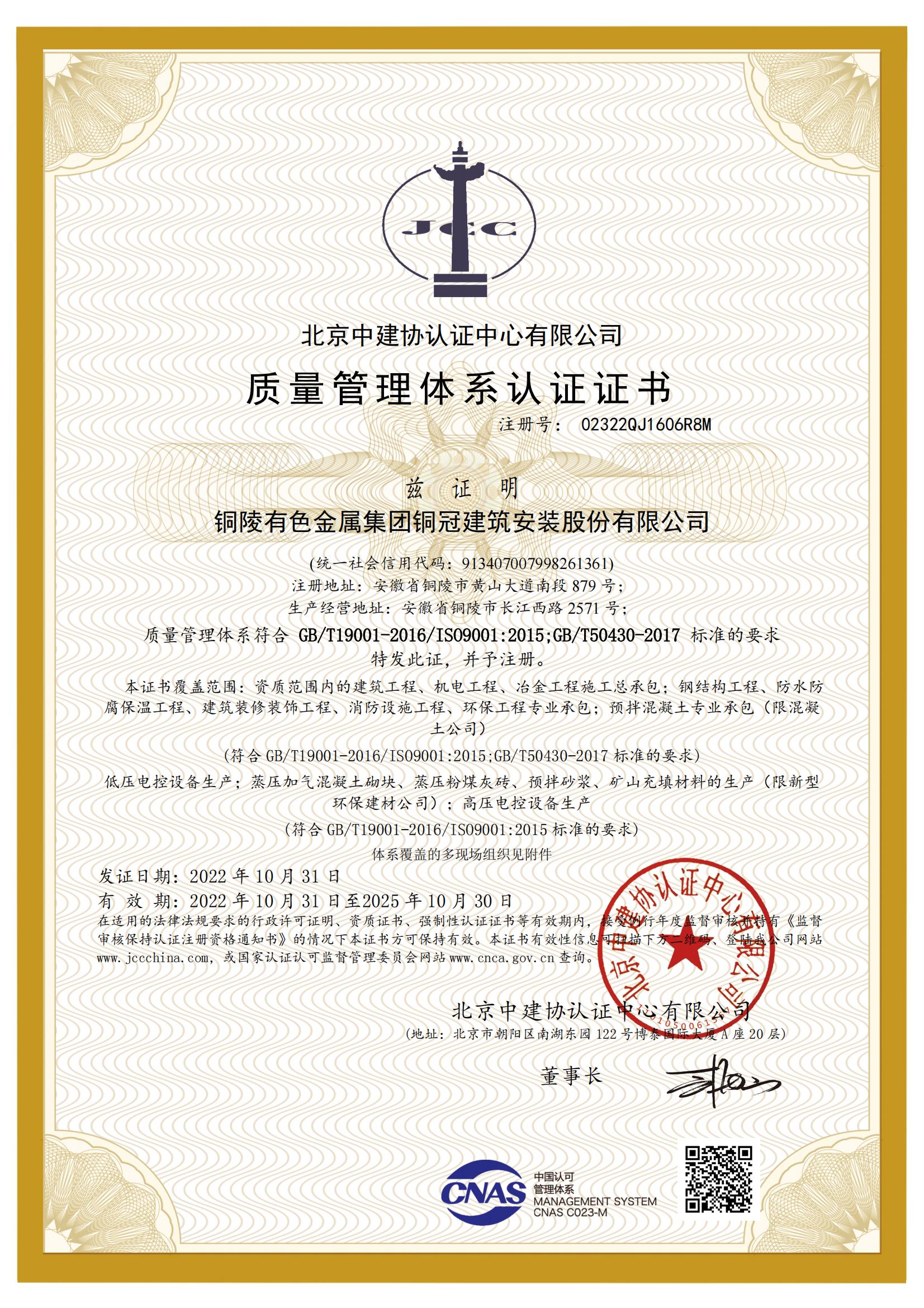 質(zhì)量管理體系認(rèn)證證書