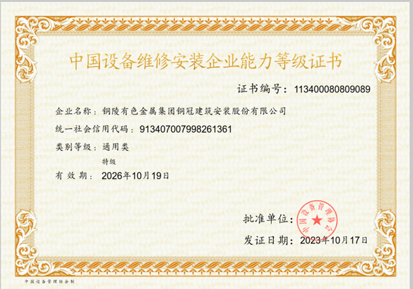 中國設(shè)備維修安裝企業(yè)能力等級(jí)證書