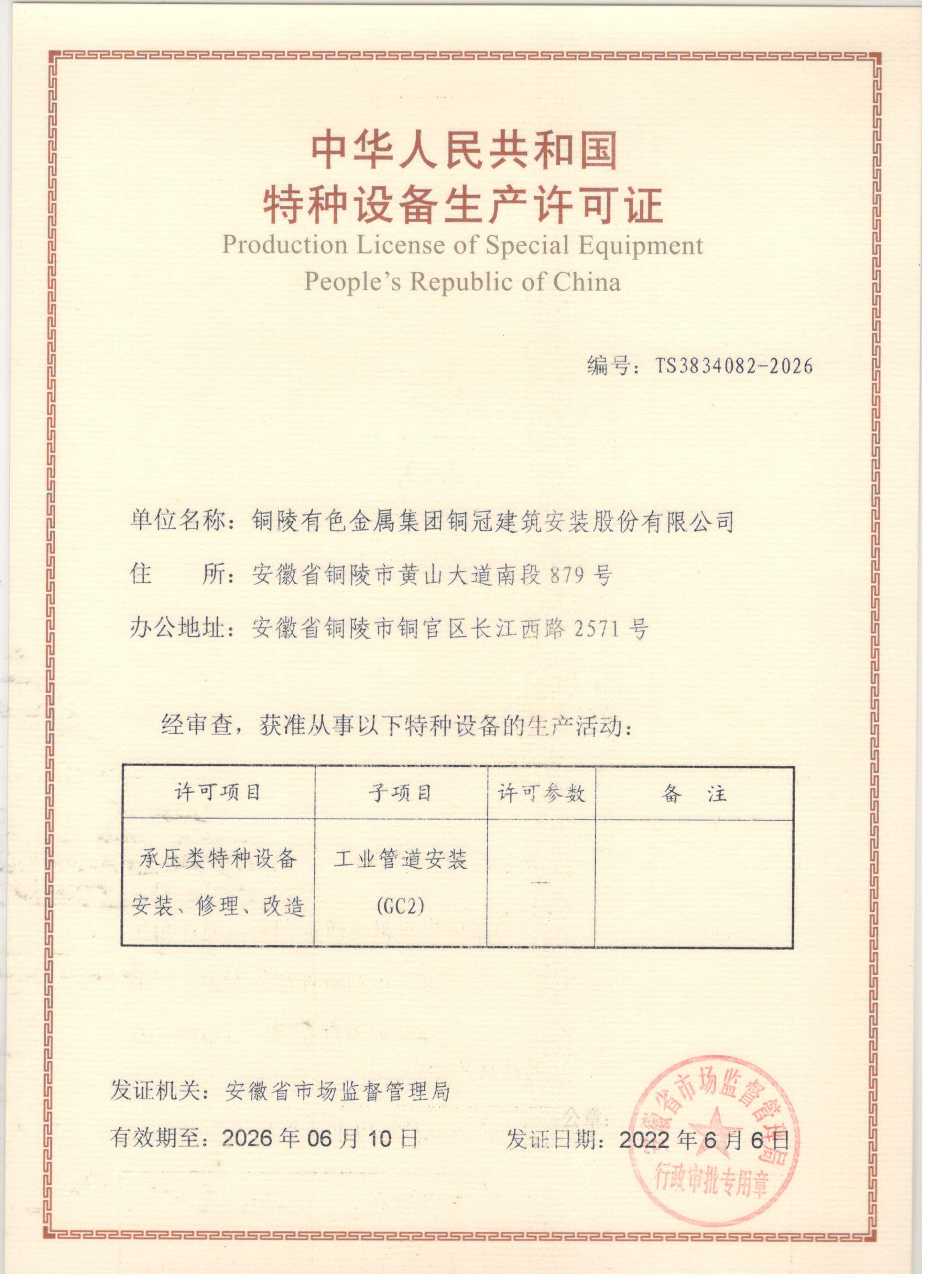 特種設(shè)備安裝改造修理許可證-壓力管道